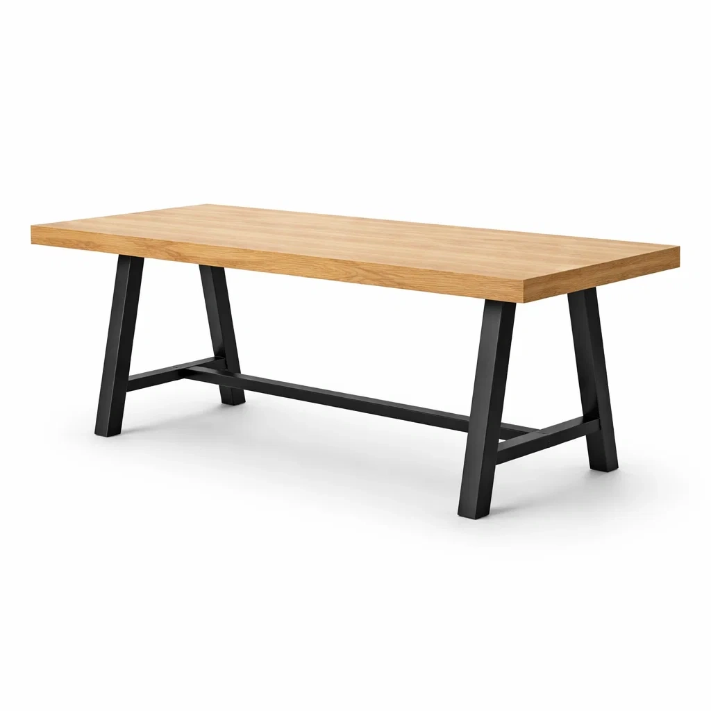 Tavolo rettangolare in legno di rovere con gambe in acciaio nero