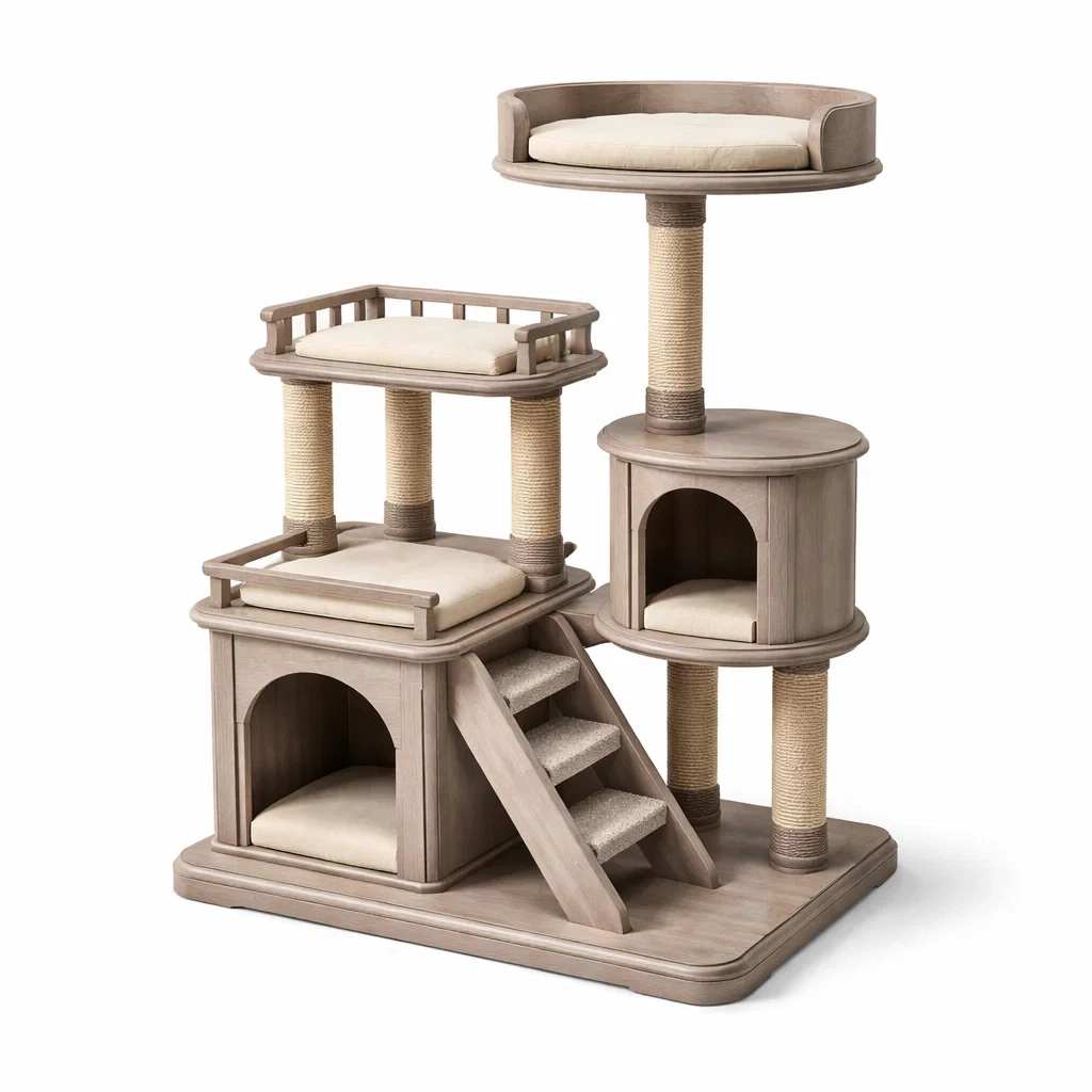 Caratteristiche funzionali: 3 livelli, 2 piattaforme, 2 cucce, aree per scalare